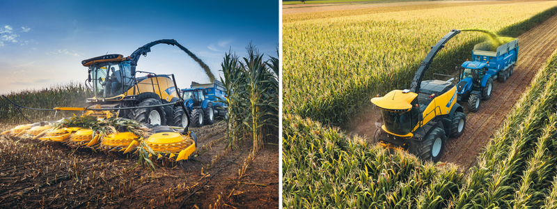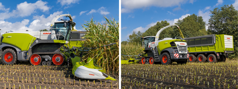 do zbioru kukurydzy na kiszonkę: sieczkarnie firm CLAAS, JOHN DEERE, KRONE, NEW HOLLAND