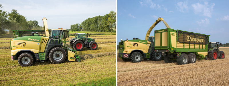 i ciągnikiem John Deere BiG X 680 to jeden z 8 modeli sieczkarni Krone w przedziale mocy od 480 KM do nawet 1180 KM. Jest wyposażona w 8-cylindrowy silniki Liebherr o pojemności 16,16 l. Uniwersalny bęben tnący MaxFlow z 28 nożami umożliwia bezstopniową regulację długości cięcia w zakresie od 4 do 25 mm z terminala w kabinie. W zależności od przeznaczenia sieczki (pasza dla zwierząt, sieczka na biogaz) Krone oferuje 5 różnych rodzajów bębnów tnących które pozwalają na uzyskanie długości cięcia od 2 do 35 mm. Różnica prędkości obrotowej dwóch walców nowo opracowanego zgniatacza ze skośnie ustawionymi zębami może wynosić 30, 40 lub 50%. Z sieczkarnią będzie współpracowała przyczepa Krone ZX 470 GD o pojemności 47 m3 sprzężona z ciągnikiem John Deere. Przyczepy samozbierające serii ZX mają konstrukcję ramową i tylne walce dozujące. Duże zagęszczenie zbieranego materiału zapewnia regulowana ściana przednia.